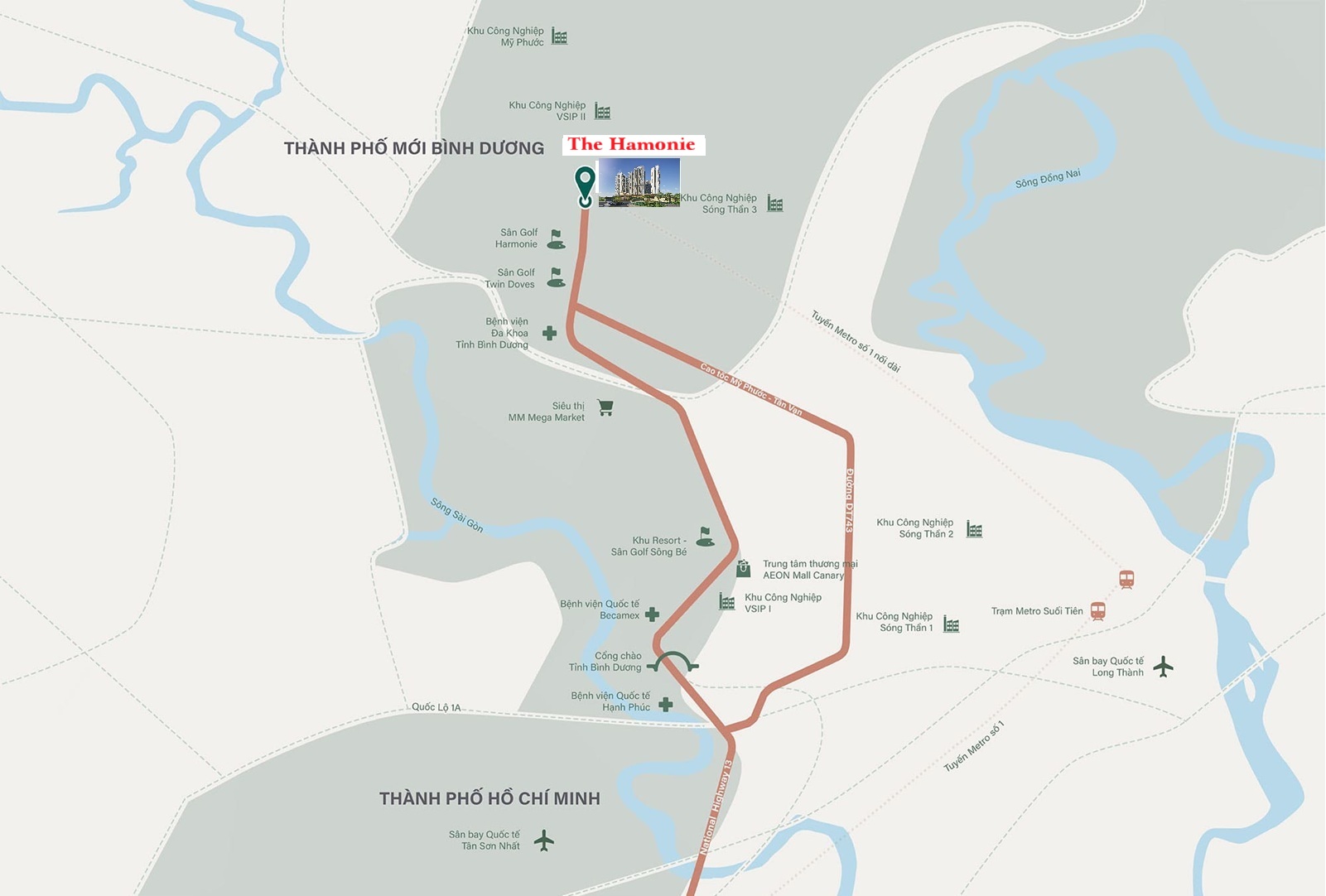 Dự án Phú Mỹ Hưng Bình Dương hay The Harmonie là một khu căn hộ cao cấp, nằm tại vị trí đắc địa ngay mặt tiền đường Võ Văn Kiệt, thuộc khu vực trung tâm hành chính của thành phố mới Bình Dương. Với vị trí thuận lợi, dự án Phú Mỹ Hưng Bình Dương không chỉ kết nối dễ dàng đến các tiện ích công cộng như trường học, bệnh viện, trung tâm thương mại, mà còn nằm gần các khu công nghiệp lớn, giúp thuận tiện cho cư dân trong việc đi lại và làm việc.