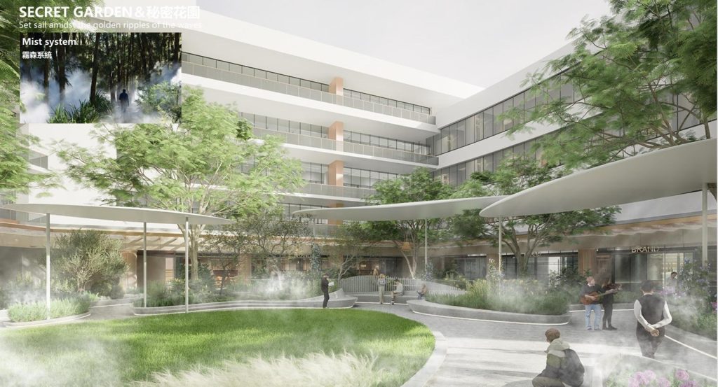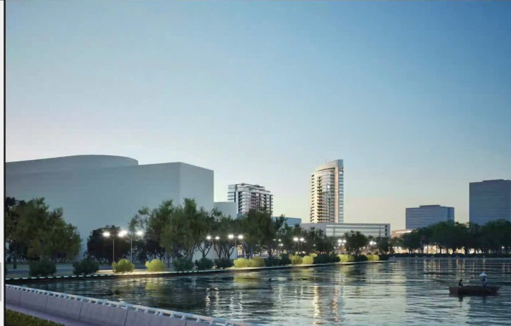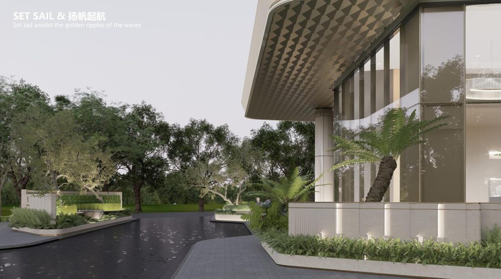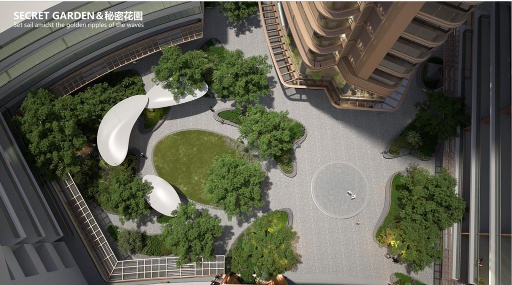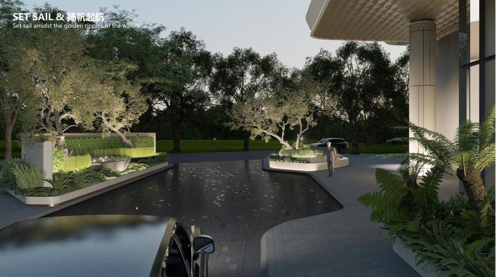Khu Hồ Bán Nguyệt được thiết kế mô phỏng theo vịnh Singapore để tạo nên điểm nhấn, là một trung tâm của cộng đồng (a social heart) cho toàn đô thị với những tòa nhà hiện đại được xây dựng xoay quanh đường cong hình cánh cung của Hồ Bán Nguyệt, mục tiêu mang đến một trung tâm giải trí thú vị và khu mua sắm hiện đại cho tất cả mọi người.