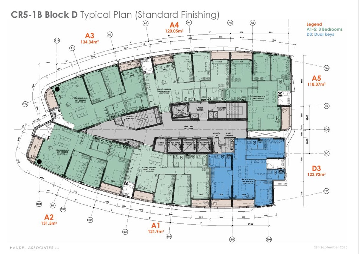 • Diện tích : 122–135m² | Penthouse 255–257m² |